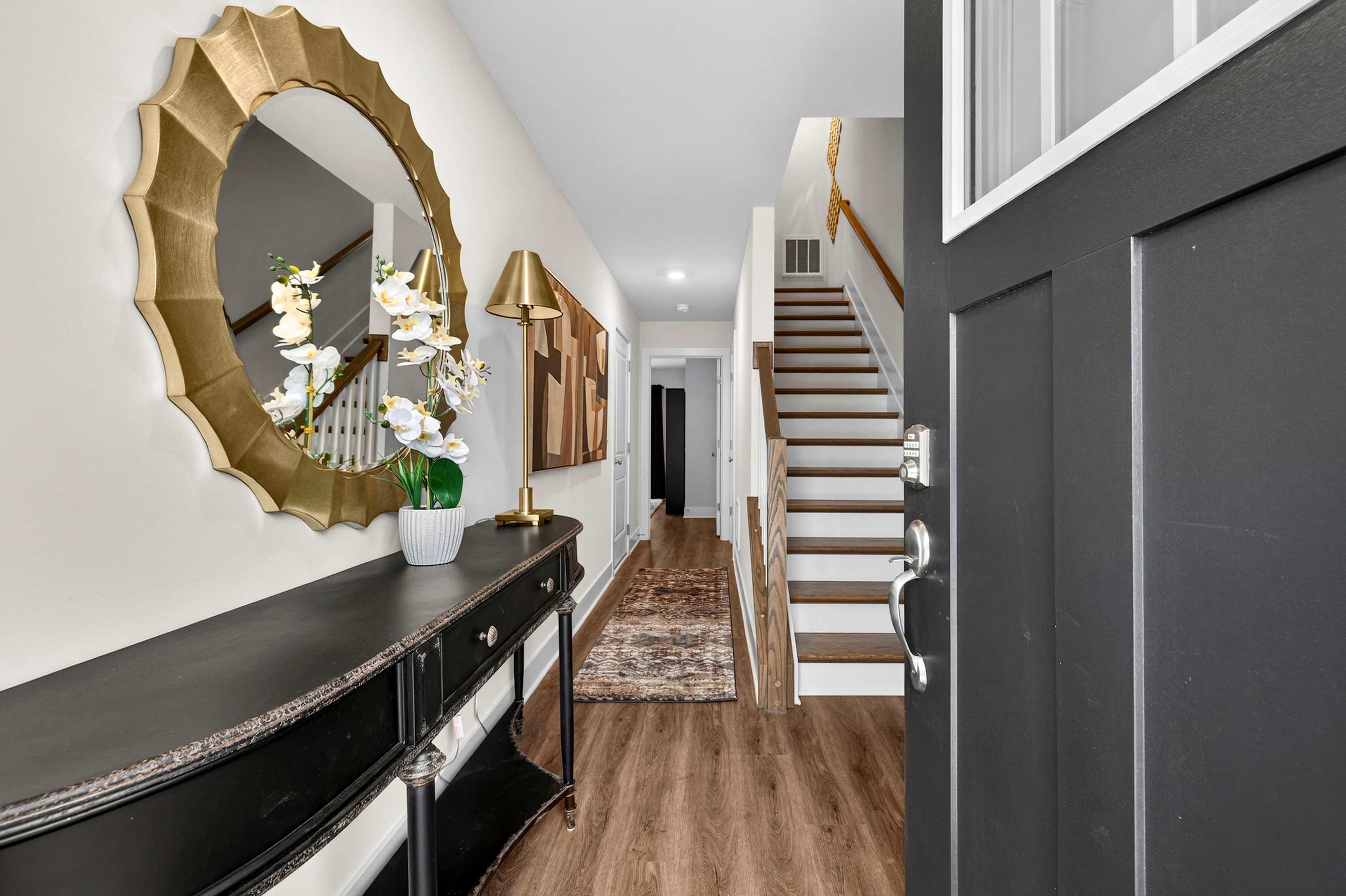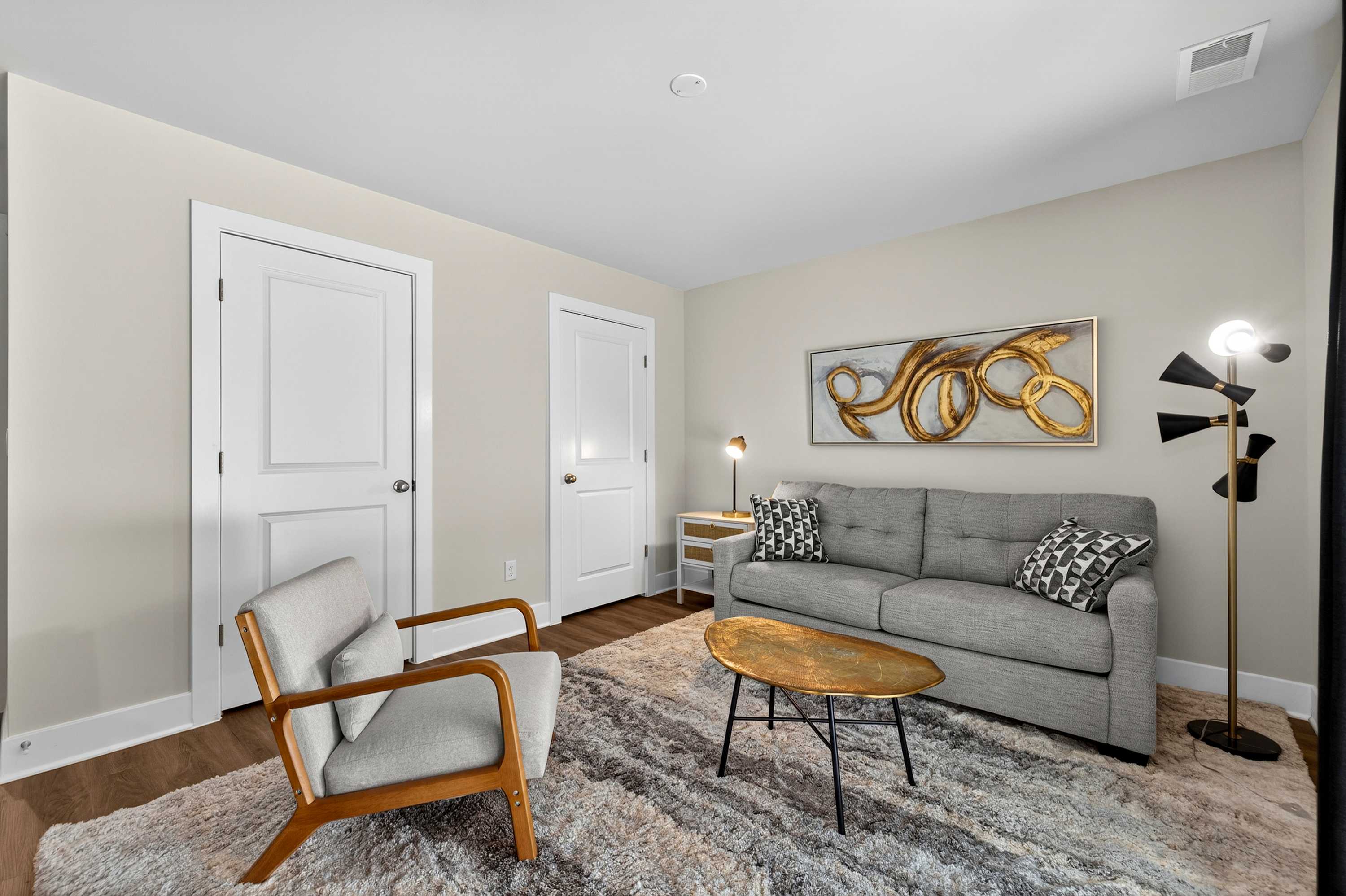 Modern multi-level townhome in Winchester, VA featuring stylish mid-century furnishings. Enjoy a lower-level hangout space with Smart TV, Netflix & Prime Video, plus a fully equipped kitchen and Xfinity internet. Ideal for local festivals, Old Town exploring, and Shenandoah Valley getaways—comfortable, convenient, and thoughtfully designed for relaxing stays.