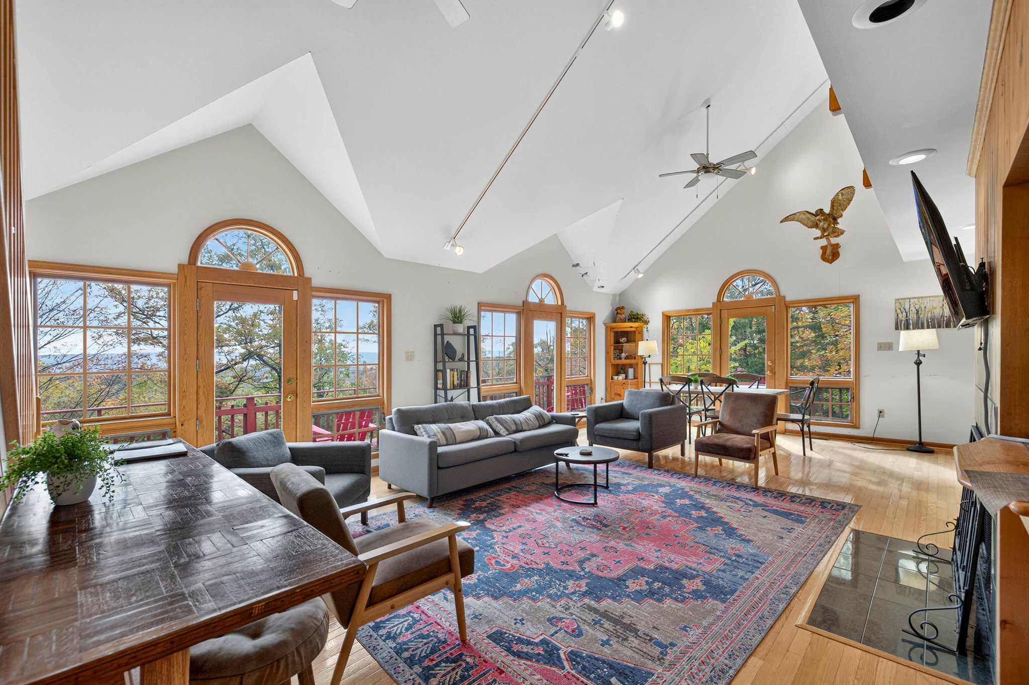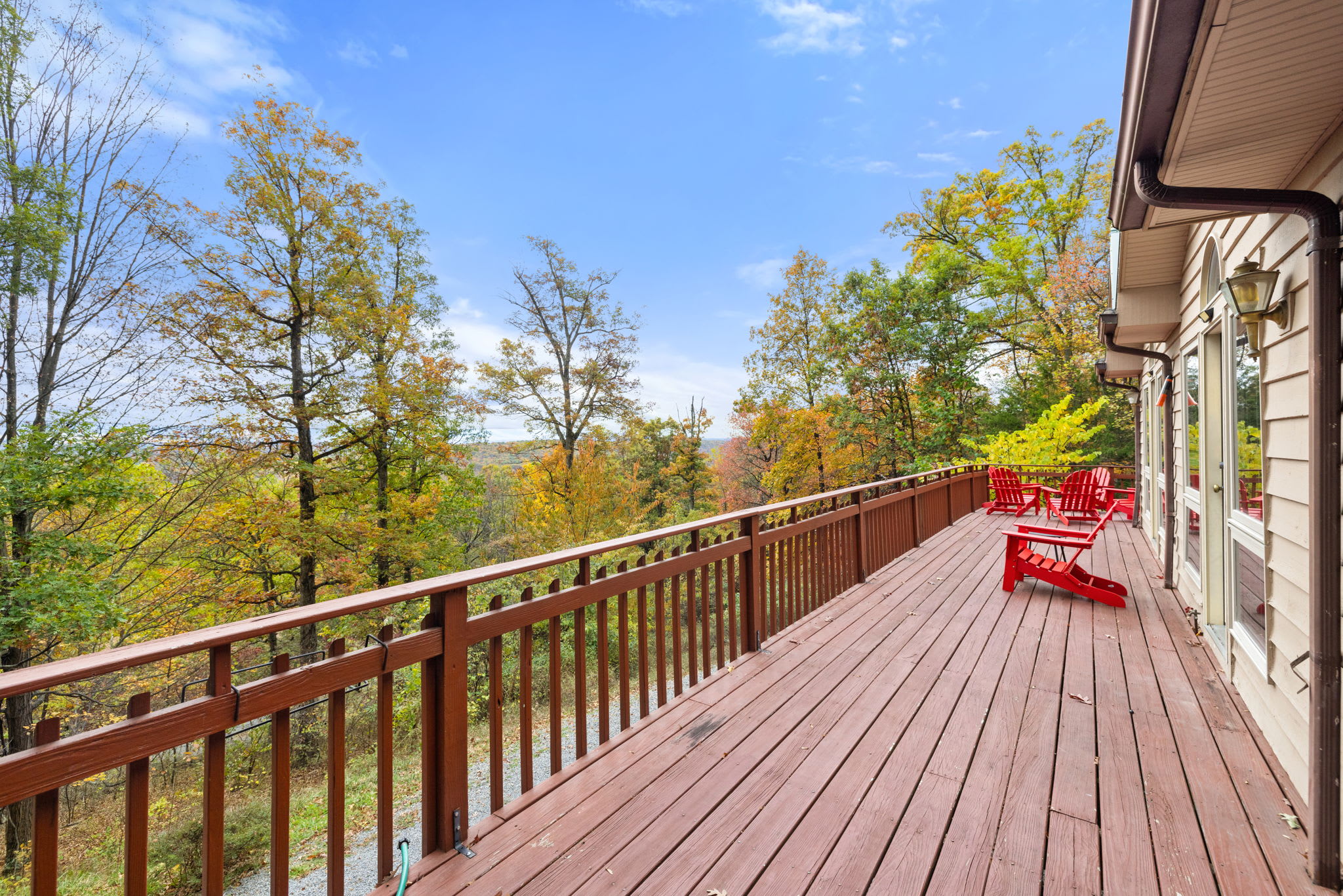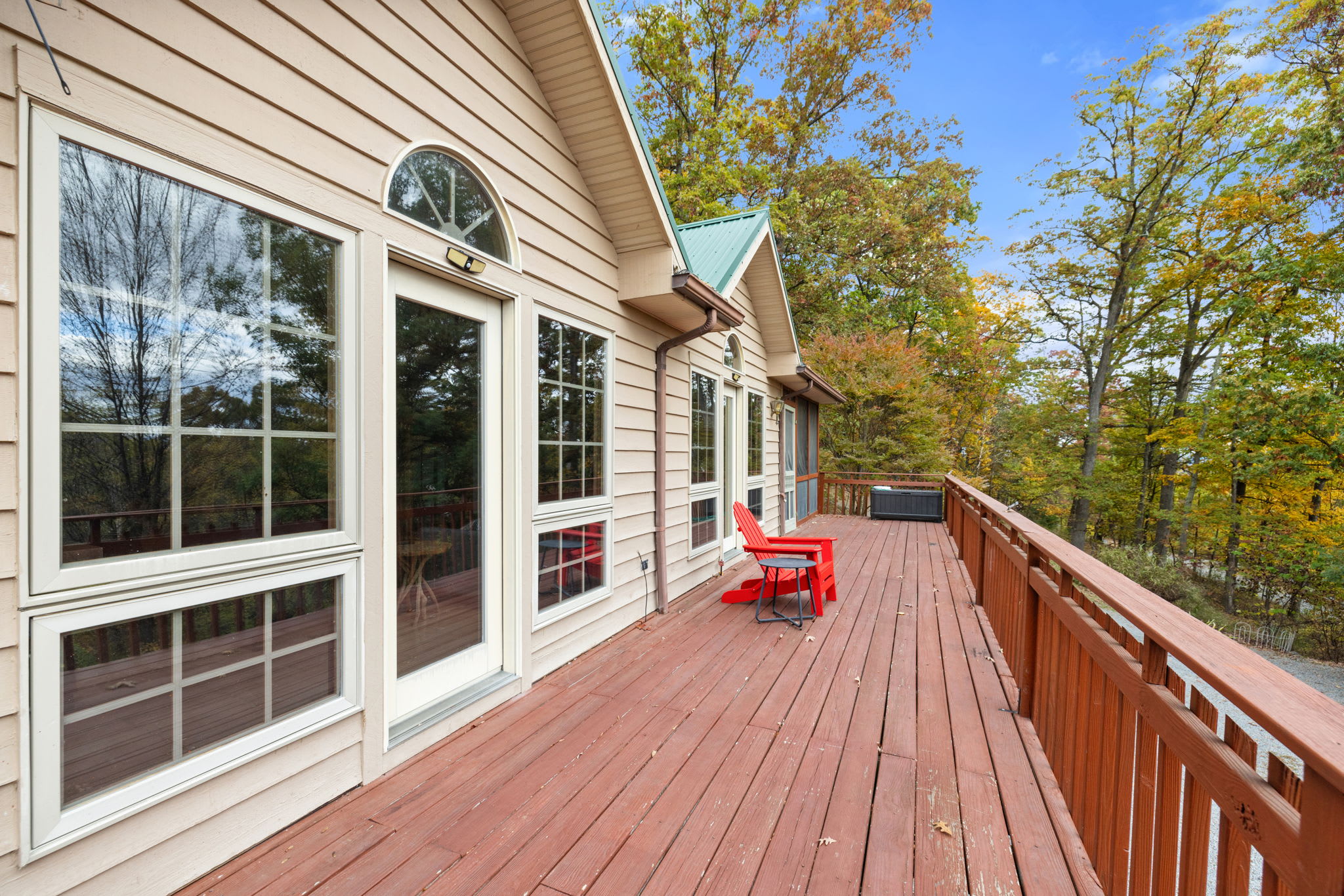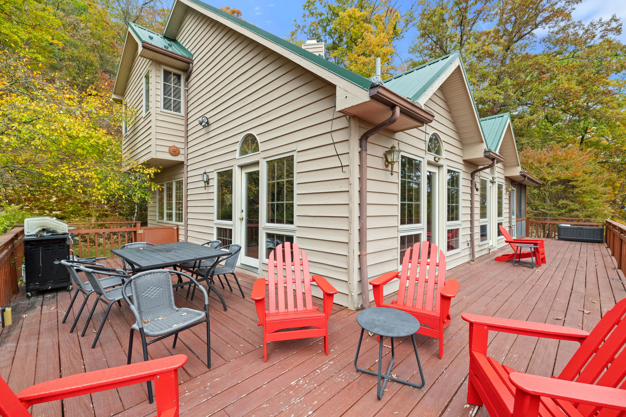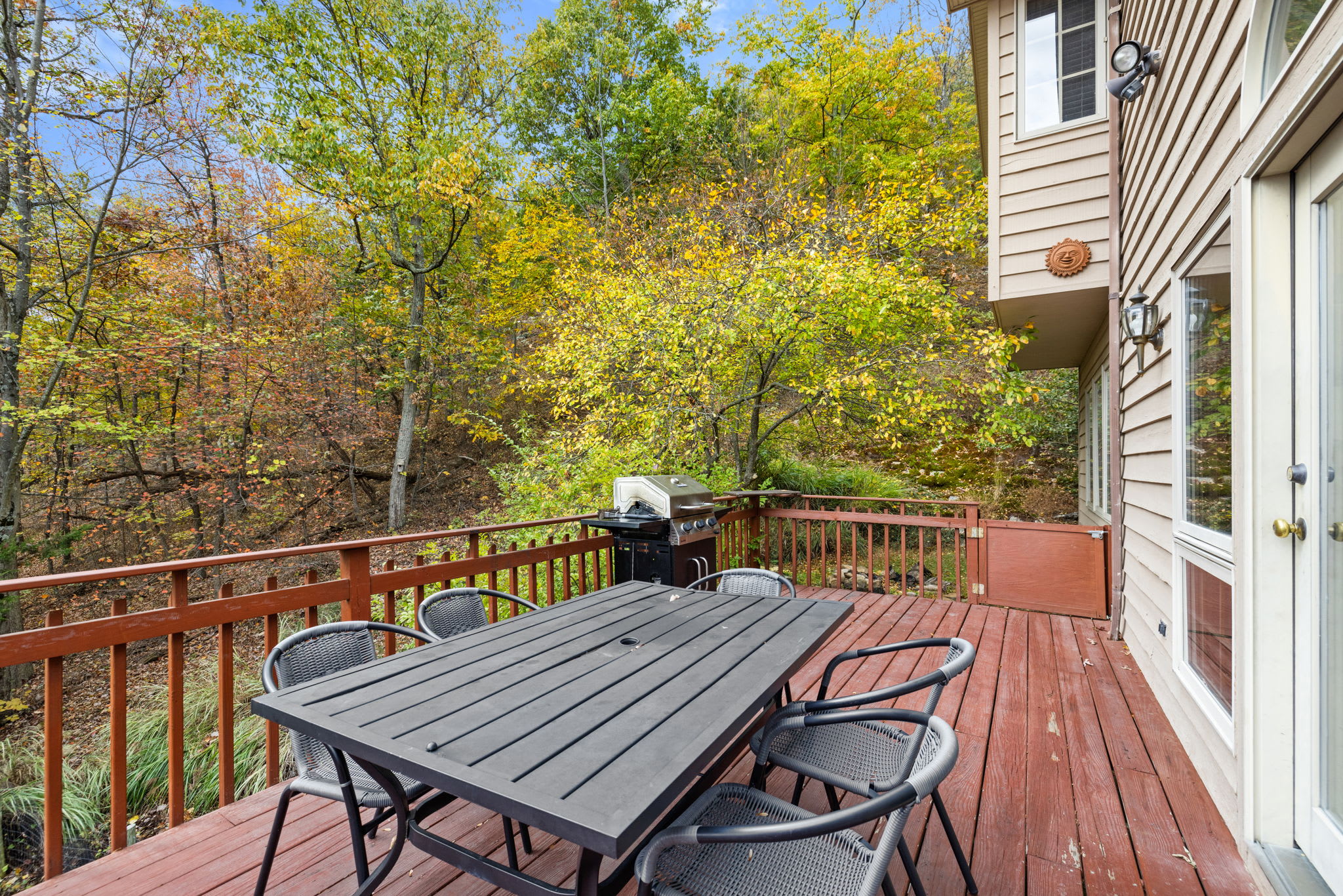 - Grill on the wrap-around deck nestled in the woods