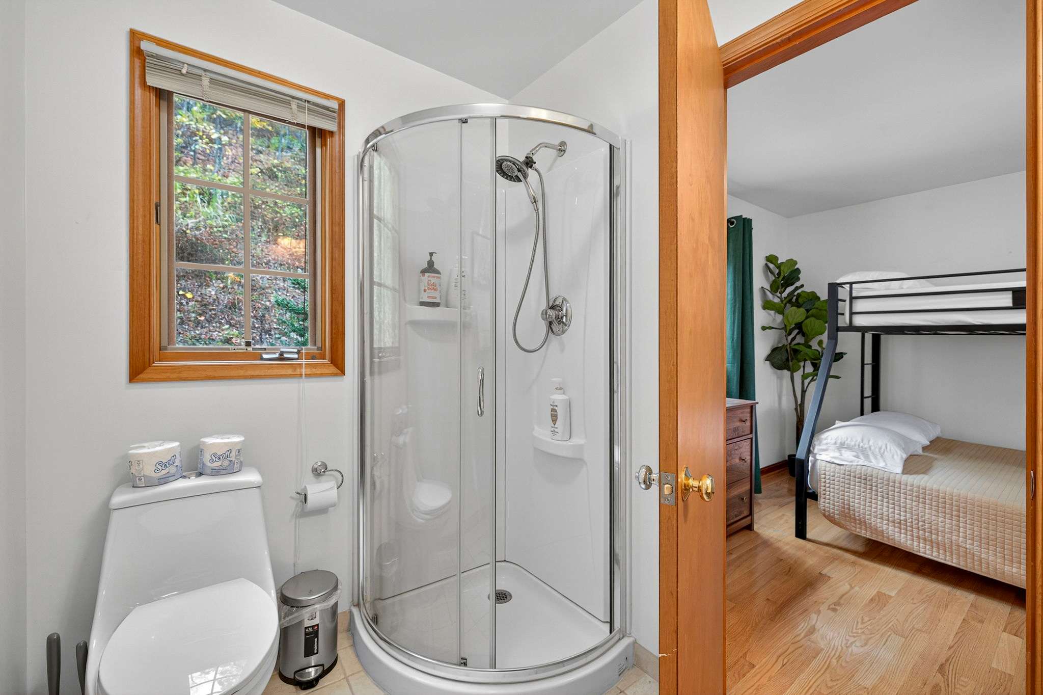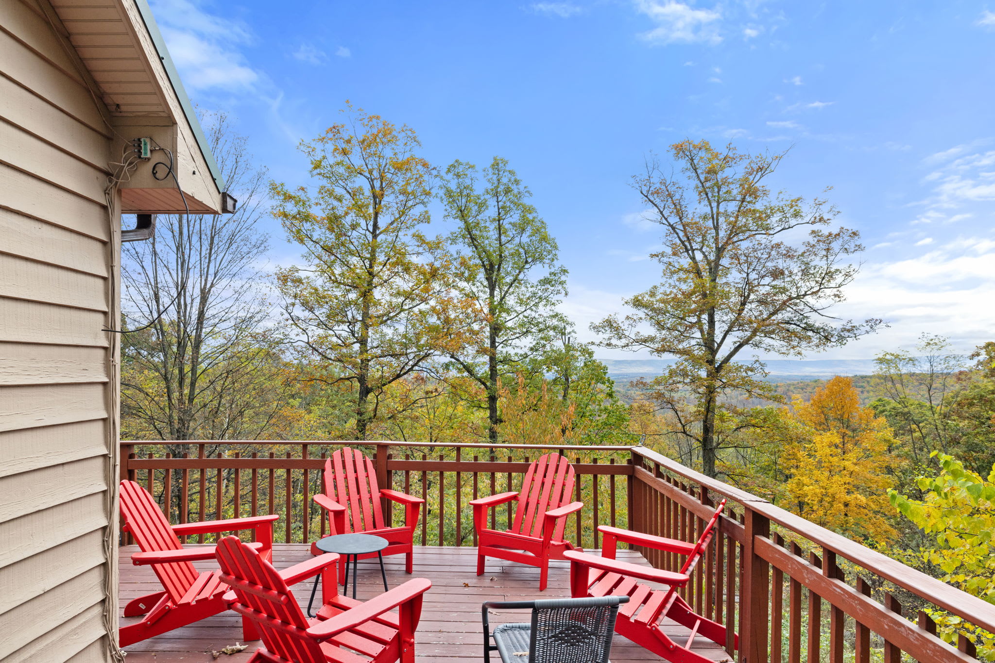 Our cleaning team sweeps the deck, stairs, and walkways before each arrival, but due to the natural setting, you may still notice some leaves, pollen, or similar—especially during certain seasons. We appreciate your understanding as nature tends to leave its mark, no matter how often we tidy up!